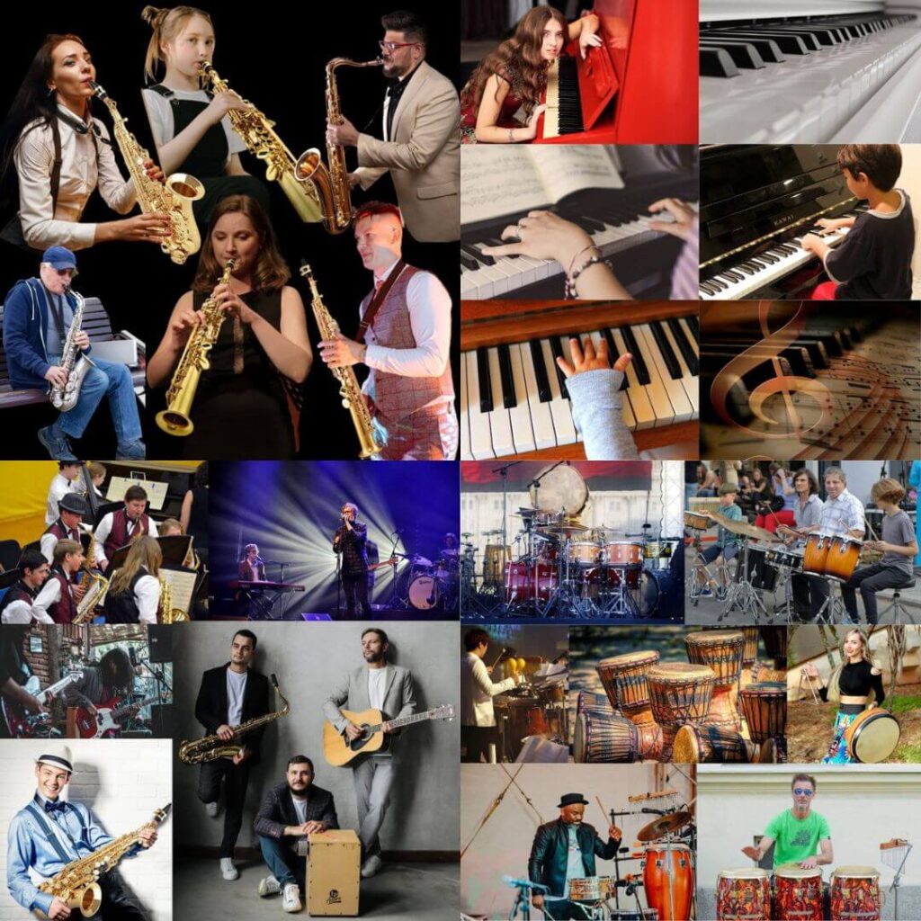 Emblèmes de cuivres, sections de cors, chœurs gospel, …